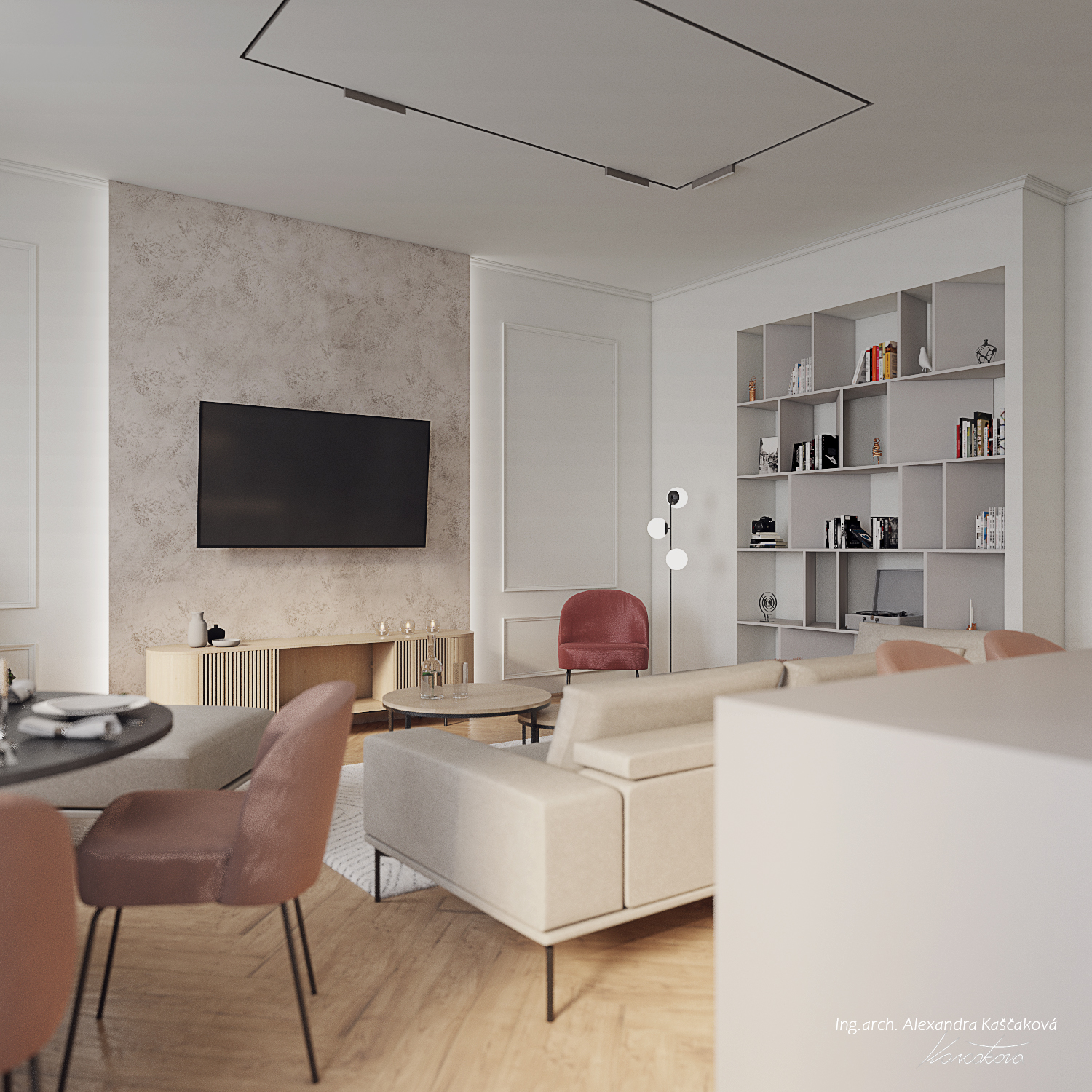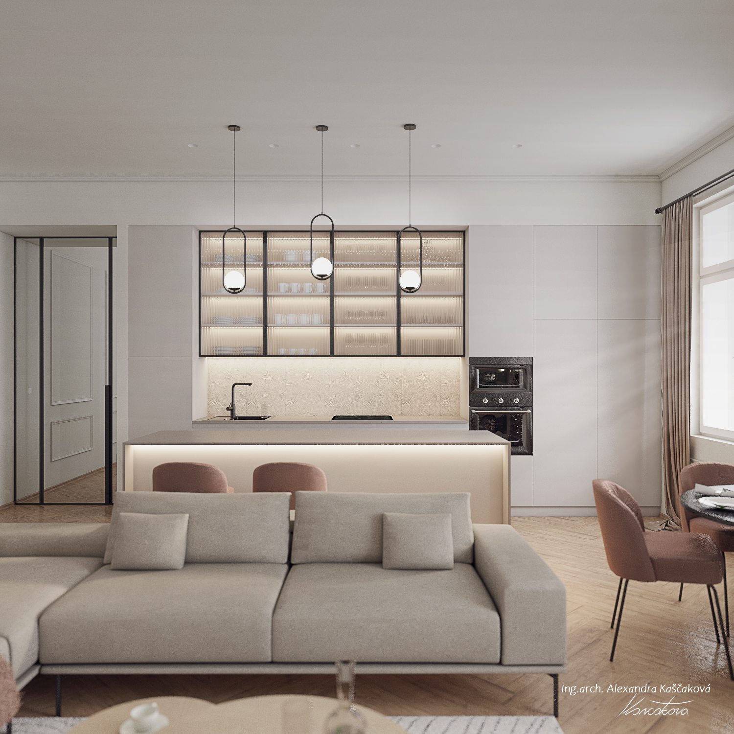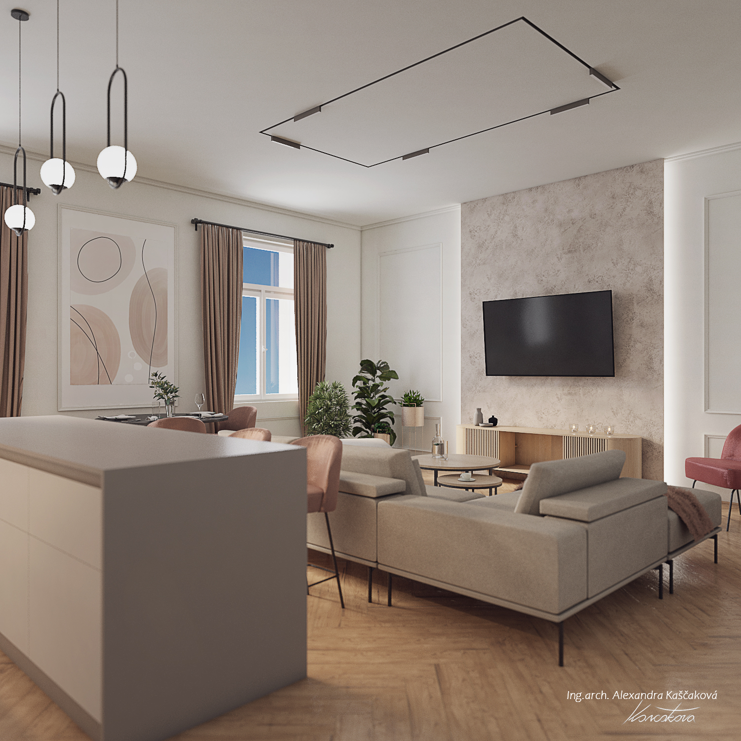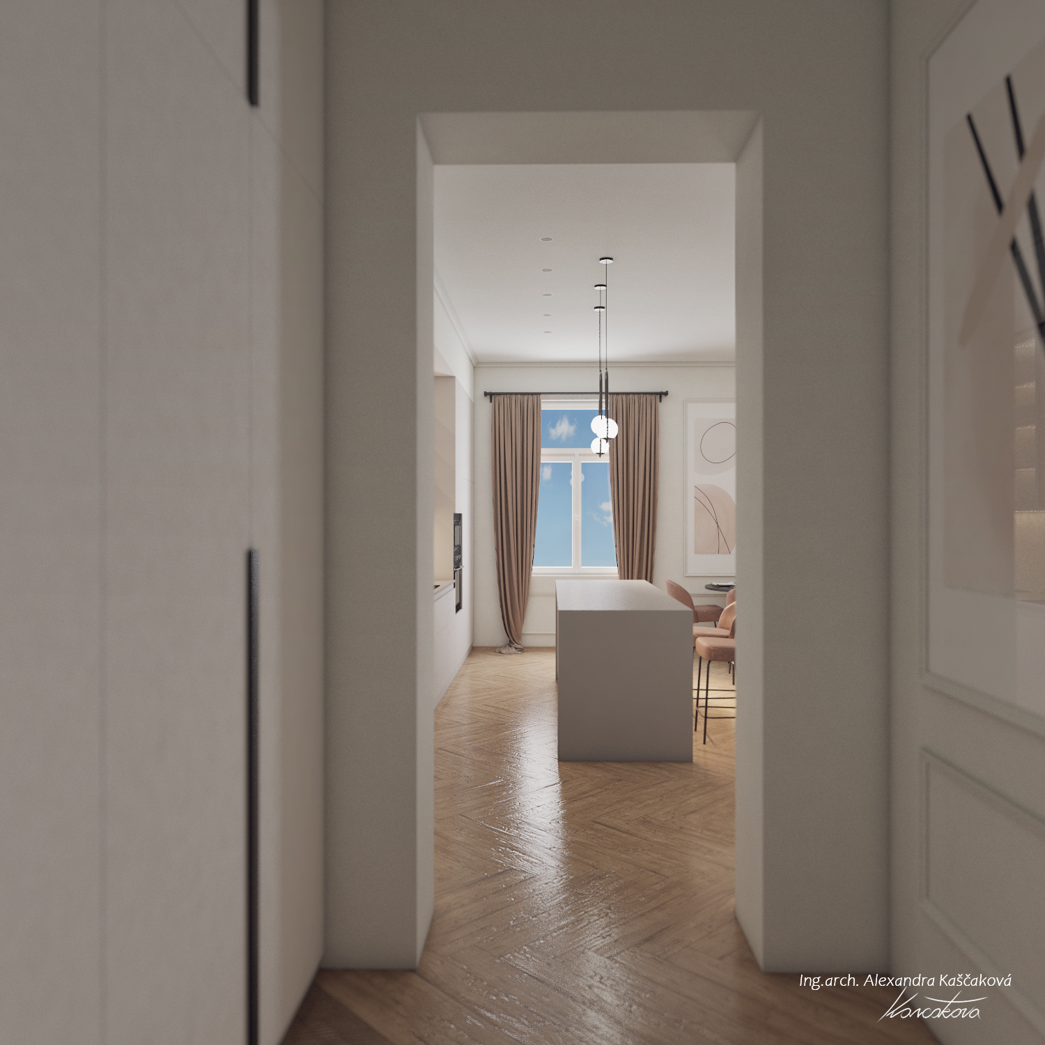 Celková rekonstrukce bytu na Praze 2 byla provedena velkoryse s důrazem na modernizaci a přizpůsobení současným trendům v bydlení. Hlavním zásahem bylo odstranění dělících příček, což umožnilo vytvořit otevřený a prostorný obytný prostor. Tento krok vedl k integraci obývacího pokoje, kuchyně a jídelního koutu do jednoho soudržného celku, což je dnes velmi oblíbený model bydlení. Významným přírůstkem do bytu byla sauna umístěná koupelně. Tento luxusní prvek přidává na hodnotě bytu a poskytuje relaxaci a zdravotní benefity přímo z pohodlí domova. Z hlediska designu jsme se snažili o skloubení klasického a moderního stylu,který kombinuje tradiční prvky s jednoduchostí a čistotou novodobého designu. Díky vytvoření rovnováhy mezi starým a novým, vznikl prostor, kde klasické prvky slouž k přidání tepla a historie, zatímco moderní prvky dodávají svěžest a funkčnost.