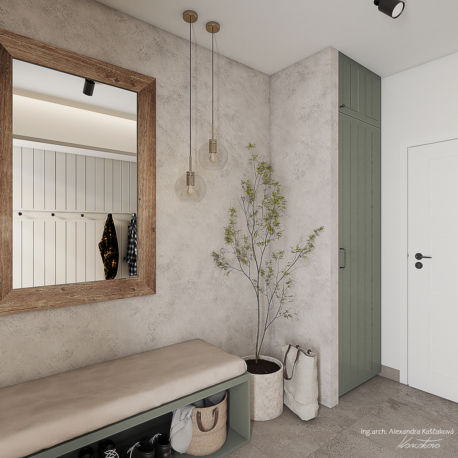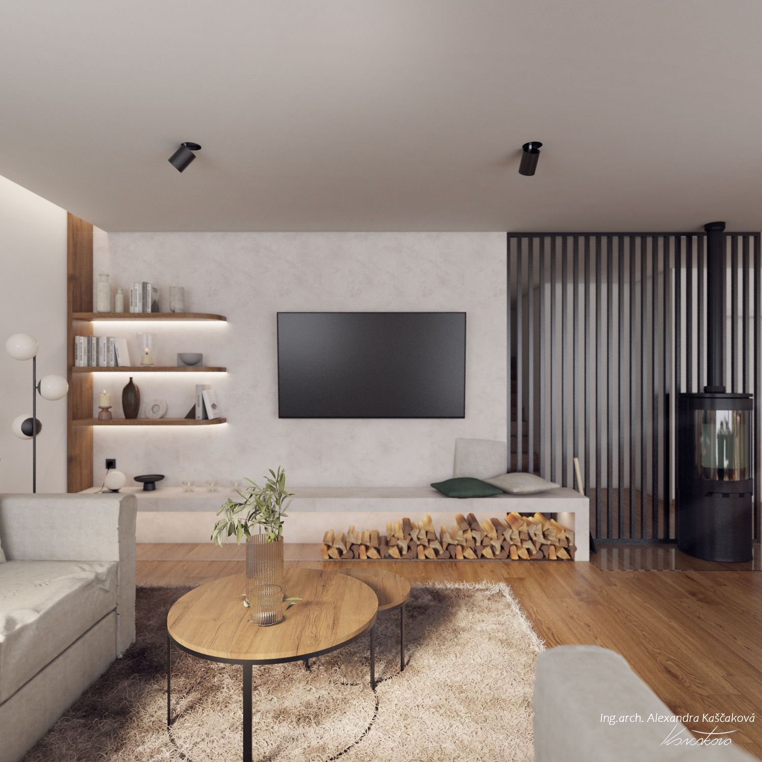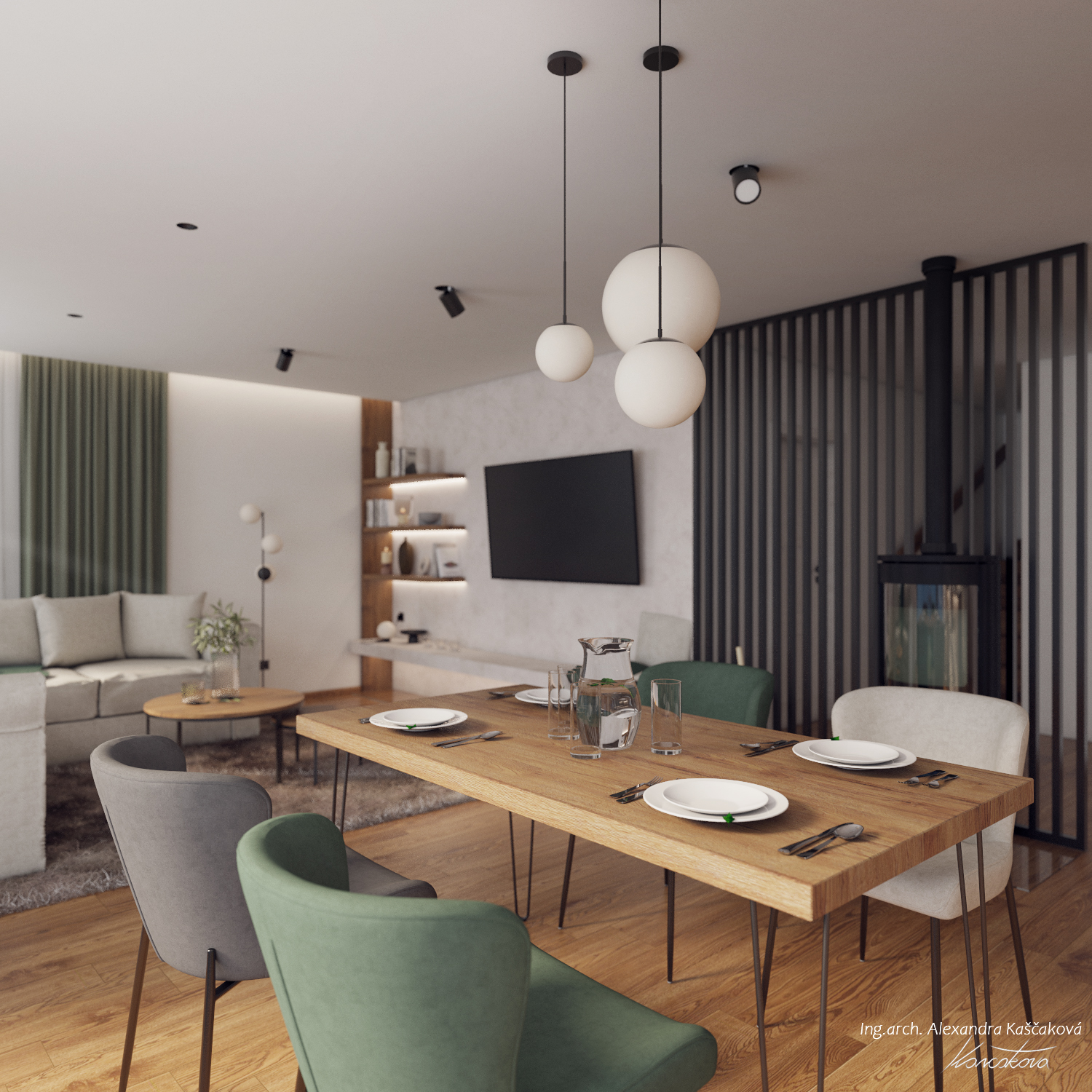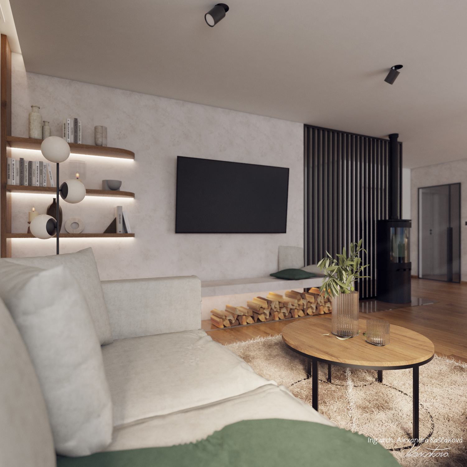Při vytváření konceptu návrhu interiéru rodinného domu ve Velkých Popovicích bylo cílem skloubit rustikální nádech s prvky moderního bydlení. Toto propojení vytváří harmonickou kombinaci tradičních prvků s čistými, současnými liniemi. V návrhu často pracuji s přírodními materiály jako dřevo, imitace kamene nebo použitím kovových prvků, které jsou zpracovány tak, aby vypadaly co nejvíce autenticky a přirozeně, což je typické pro rustikální design. Moderní aspekty se projevují v jednoduchosti, čistých liniích a minimalistickém přístupu k dekoraci. Například , místo těžkých dřevěných nábytků jsem použila lehčí, elegantní kusy s moderním designem, které však stále zachovávají rustikální estetiku, ať už skrze dřevěné detaily nebo přírodní textury. Moderní technologie a osvětlení, jako jsou LED svítidla nebo integrované technologie, jsou diskrétně zakomponovány do interiéru, aniž by narušily rustikální atmosféru. Barevnou paletu jsme postavili na zemitých tónech, přírodních odstínech dřeva a, šedé, bílé nebo přírodní zelené barvě.