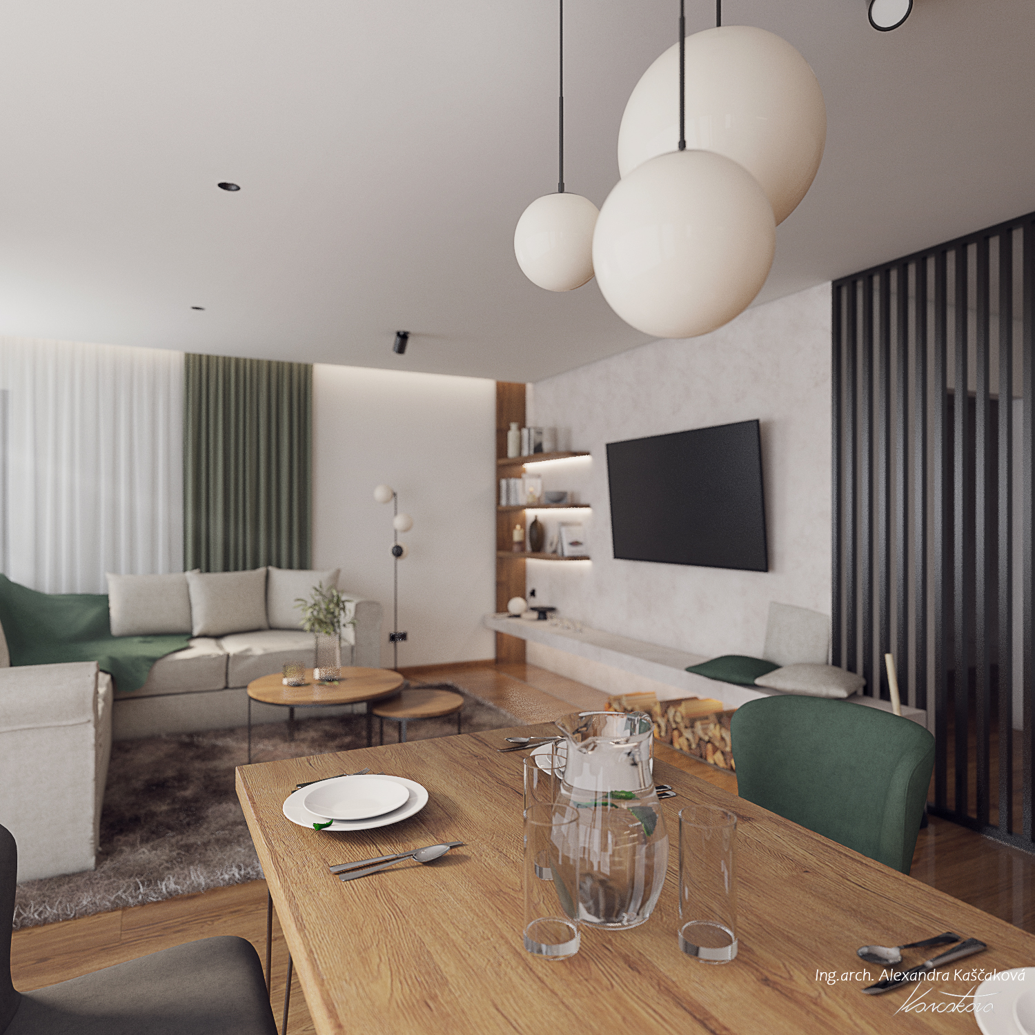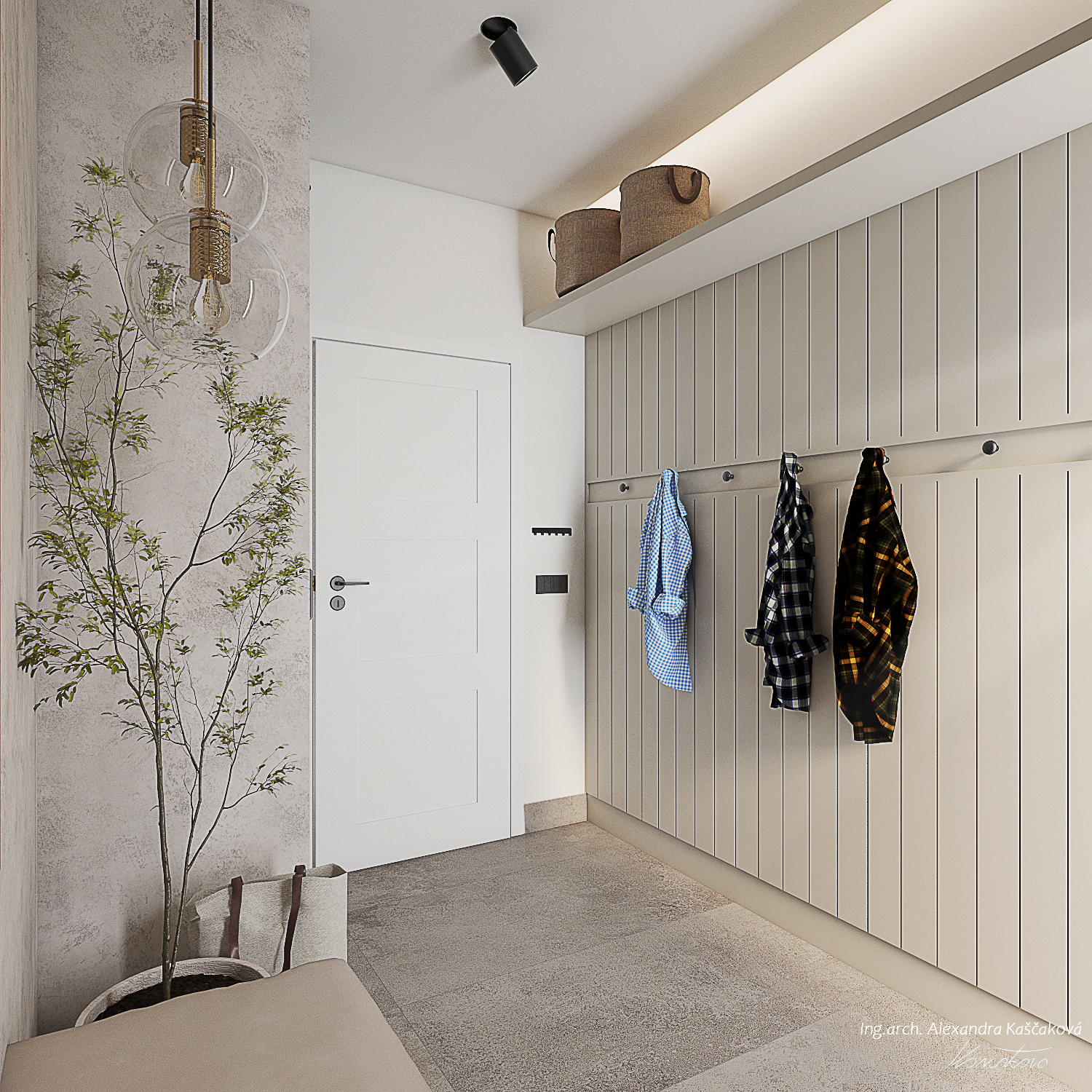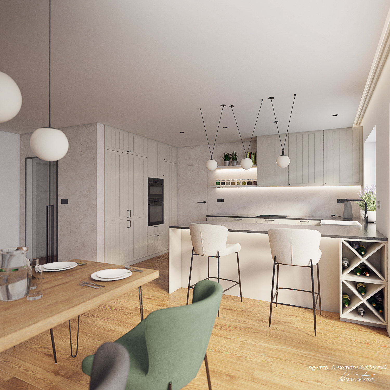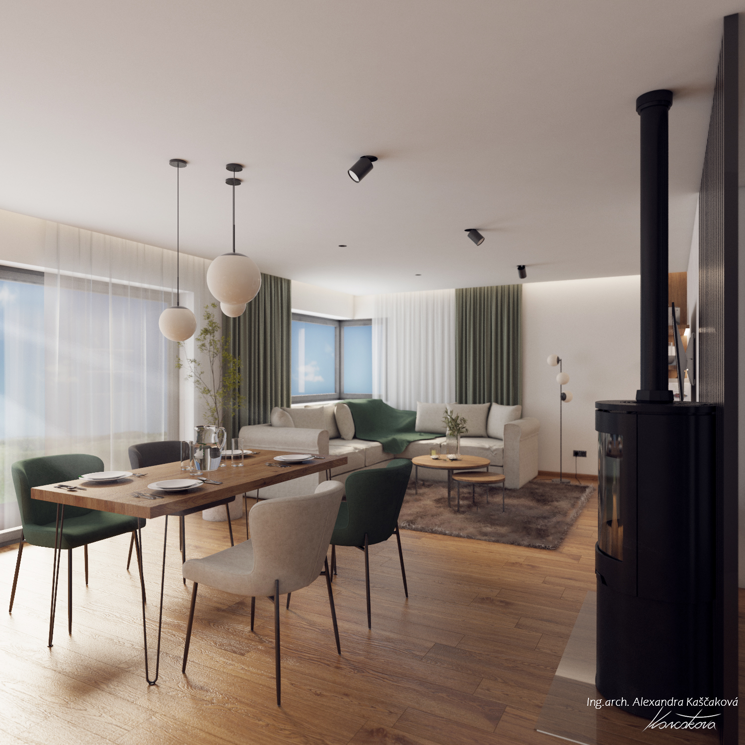 Při vytváření konceptu návrhu interiéru rodinného domu ve Velkých Popovicích bylo cílem skloubit rustikální nádech s prvky moderního bydlení. Toto propojení vytváří harmonickou kombinaci tradičních prvků s čistými, současnými liniemi. V návrhu často pracuji s přírodními materiály jako dřevo, imitace kamene nebo použitím kovových prvků, které jsou zpracovány tak, aby vypadaly co nejvíce autenticky a přirozeně, což je typické pro rustikální design. Moderní aspekty se projevují v jednoduchosti, čistých liniích a minimalistickém přístupu k dekoraci. Například , místo těžkých dřevěných nábytků jsem použila lehčí, elegantní kusy s moderním designem, které však stále zachovávají rustikální estetiku, ať už skrze dřevěné detaily nebo přírodní textury. Moderní technologie a osvětlení, jako jsou LED svítidla nebo integrované technologie, jsou diskrétně zakomponovány do interiéru, aniž by narušily rustikální atmosféru. Barevnou paletu jsme postavili na zemitých tónech, přírodních odstínech dřeva a, šedé, bílé nebo přírodní zelené barvě.